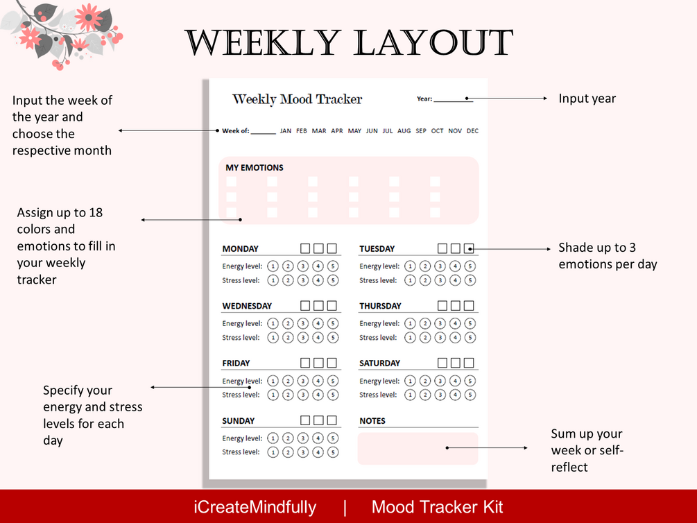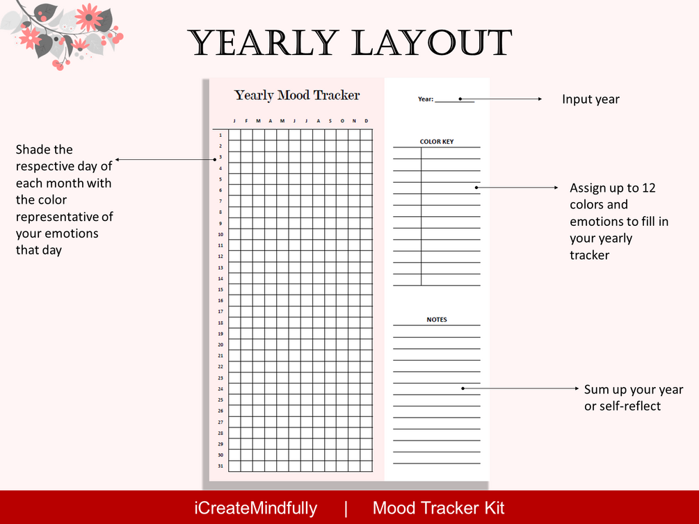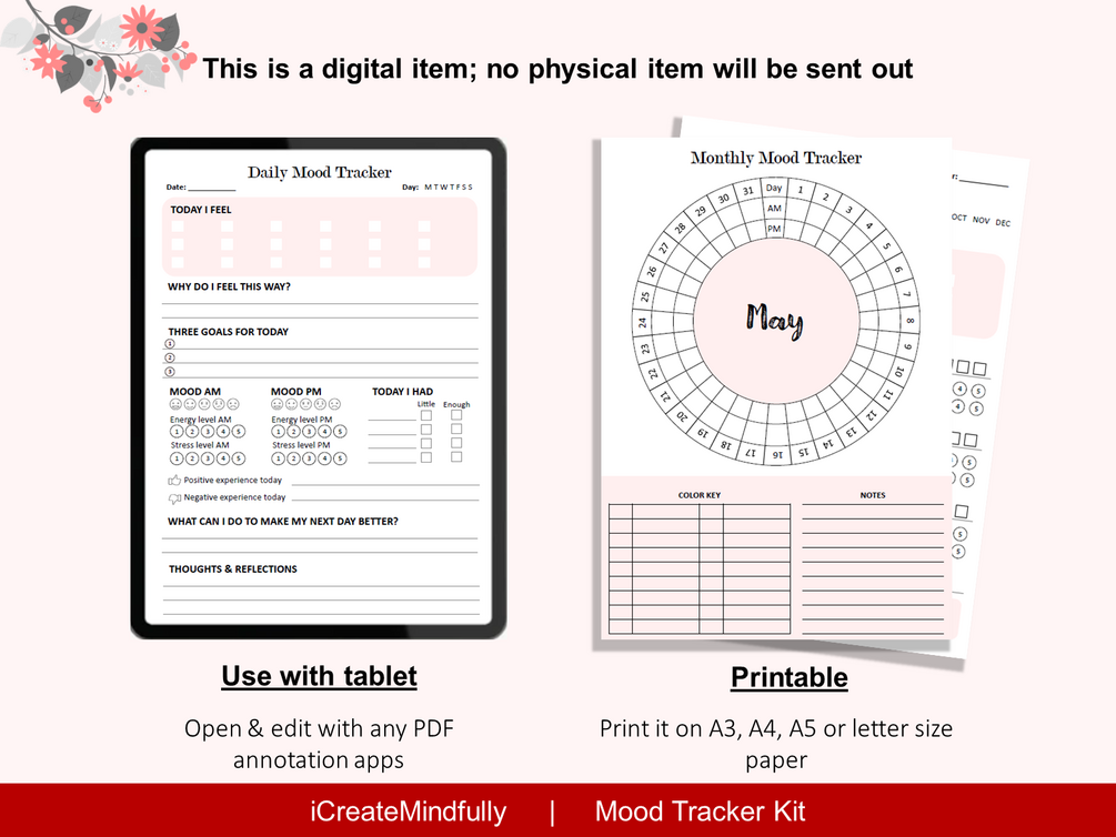 You'll get a downloadable/printable version of our mood kit tracker! Available with yearly, monthly, weekly or daily logs to use based on your convenience.