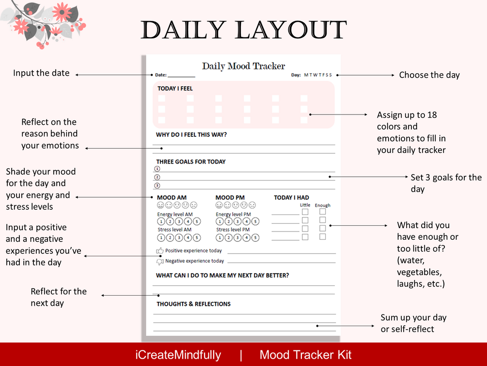 Elevate your emotional well-being with our versatile Digital and Printable Mood Tracker! This comprehensive tracker is designed to empower you on your journey towards emotional management and self-discovery.